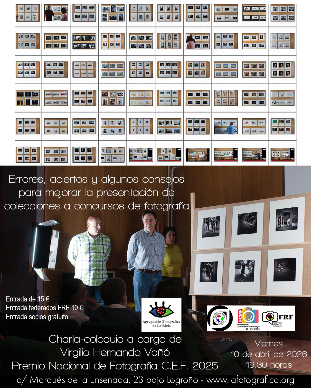 Será a cargo de Virgilio Hernando Vañó, reciente ganador del Premio Nacional al Mejor Fotógrafo 2025 otorgado por la Confederación Española de Fotografía. En ella nos contará cómo presentar (y, sobre todo, cómo no hacerlo) una colección de fotografías, con mucho más de un centenar de ejemplos reales.